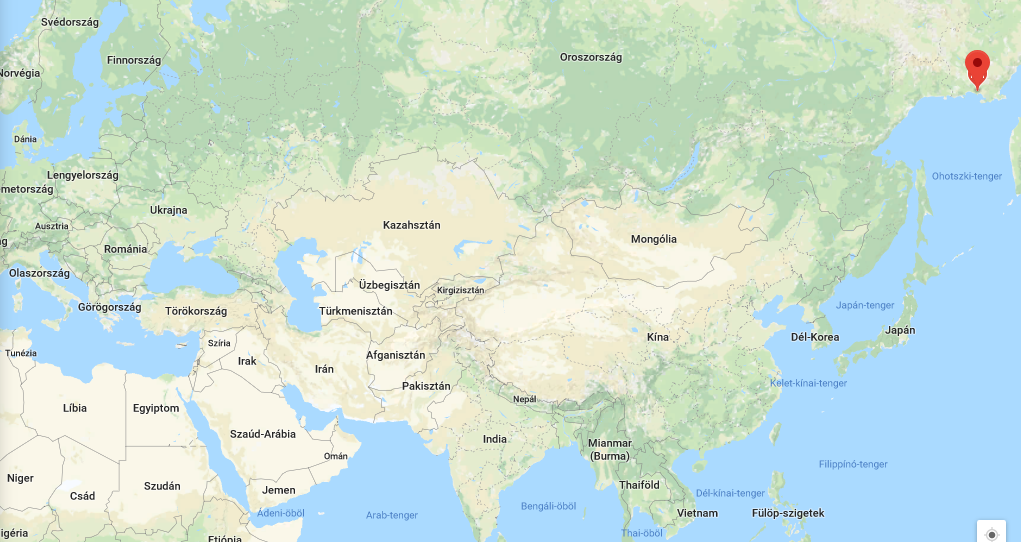 Jobbra a piros pötty Magadan, bal szélén kishazánk.